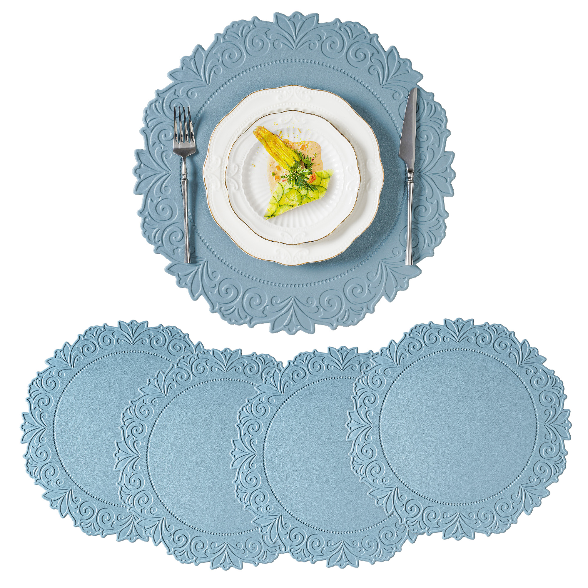 VCVCOO Vinyl Placemats Set of 4 15 inch Blue Faux Leather 100% Waterproof Oil-Proof Wipeable PU Place Mats