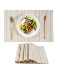 VCVCOO Beige Placemats Set of 4 - Heat Resistant Non-Slip Place mats for Dining Table, Washable Durable PVC Vinyl Woven