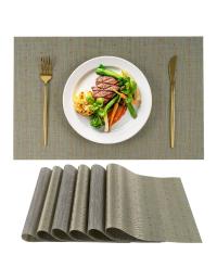 VCVCOO Gray Placemats Set of 6 - Easy Clean Washable Vinyl Placemats - Wipeable Heat Resistant Table Mats for Dining Tab