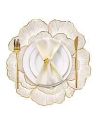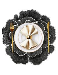 VCVCOO Placemats Set of 4, Round Pressed Vinyl Metallic Placemat, Non Slip Rose Flower Place Mat Dining Table Mats for W