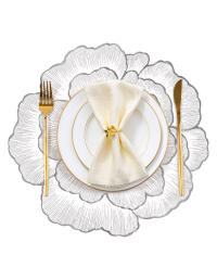 VCVCOO Placemats Set of 4, Silver Round Placemats for Dining Table Pressed Vinyl Flower Table Mats Washable Wipeable Pla