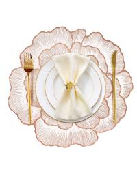 VCVCOO Round Placemats Set of 4, 15 inch PVC Vinyl Flower Placemats Washable Heat Resistant Rose Gold Place Mats Dining