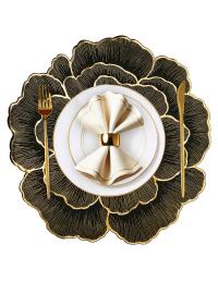 VCVCOO Round Placemats Set of 4, Black Gold Rose Floral Placemats, 15" Washable Wipeable Metallic Pressed Table Mats for
