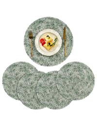 VCVCOO Round Braided Placemats Set of 4 Table Mats for Dining Tables Woven Washable Place Mats 15 inch Green