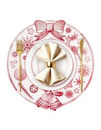 VCVCOO Placemats Set of 4 Round Red Bow Christmas Placemats Washable Table Mats Pressed Vinyl PVC Place Mats for Holiday