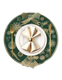 VCVCOO Round Christmas Placemats Set of 4 Green Vinyl Table Mats Heat Resistant Non Slip Xmas Place Mats for Dinning Tab