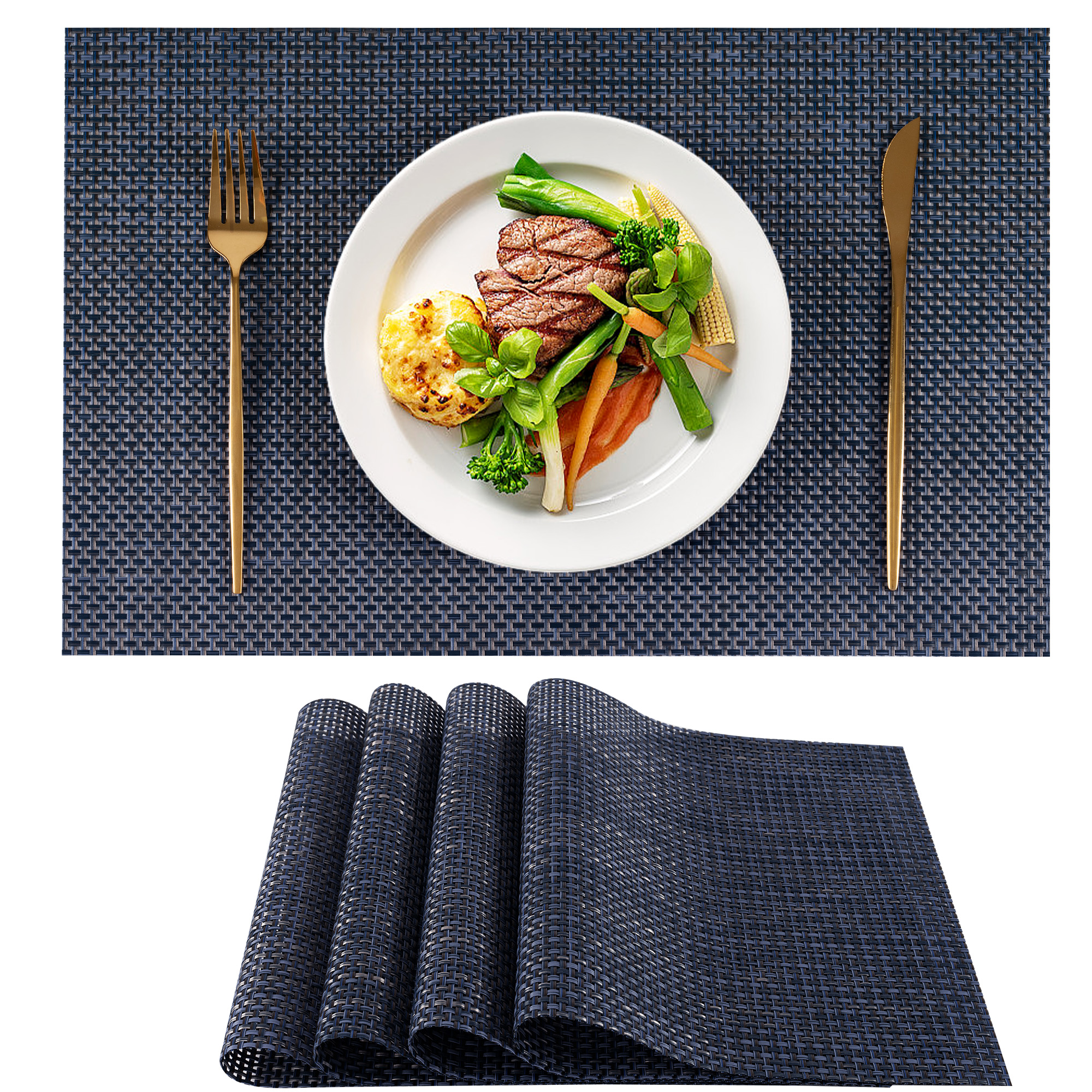 VCVCOO blue & brown placemats set of 4, 12x18 inch, crafted from 70% PVC and 30% polyester for exceptional durability and flexibility. These stylish placemats are fade-resistant, heat-resistant, completely safe for everyday use, featuring smooth edges for a seamless dining experience. Designed for both functionality and elegance, they effortlessly complement your table settings, enhancing any meal with a touch of sophistication. Perfect for pairing with tablecloths, these placemats are easy to clean, simply rinse with water or wipe with a damp cloth. Versatile for indoor and outdoor use, they’re ideal for dining tables, cafes, desks, coffee tables, and even drawers. A wonderful gift choice for Christmas, weddings, Father’s Day, Mother’s Day, Valentine’s Day, and Thanksgiving.