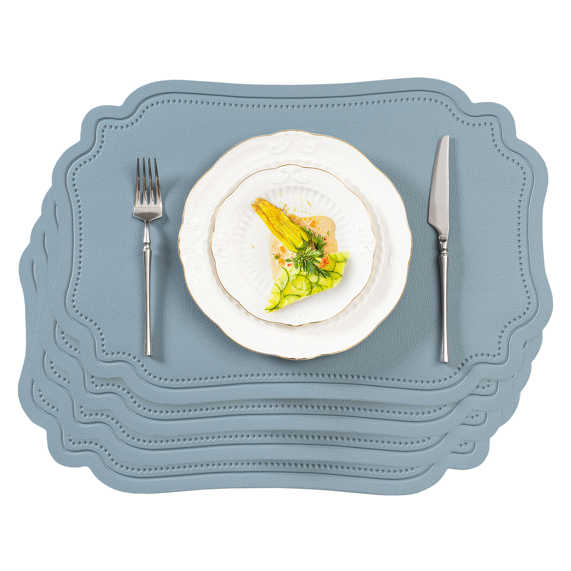 Our placemat is made from high quality vinyl faux leather that is water resistant, stain resistant andfade resistant for long-lasting use. lt features arustic and stylish style, it blends well with a widevariety of decoration styles. Vinyl faux leather placemats are easy to clean, wipe them with a damp cloth or rinse with water, wipe dry or air dry. It can be rolled up for storage and laid flat when used. Heat Resistant 212℉/100 ℃, provied perfect protection for your table. Life can be pretty tough for your table with hot plates, sharp knives and food spills. Our table mats will make every meal more fun and protect your furniture at the same time. This placemats set of 4 is suitable for everyday use, parties, holidays, gatherings, weddings, and birthdays, they’re the perfect choice for kitchen parties, dinners, and home decor.