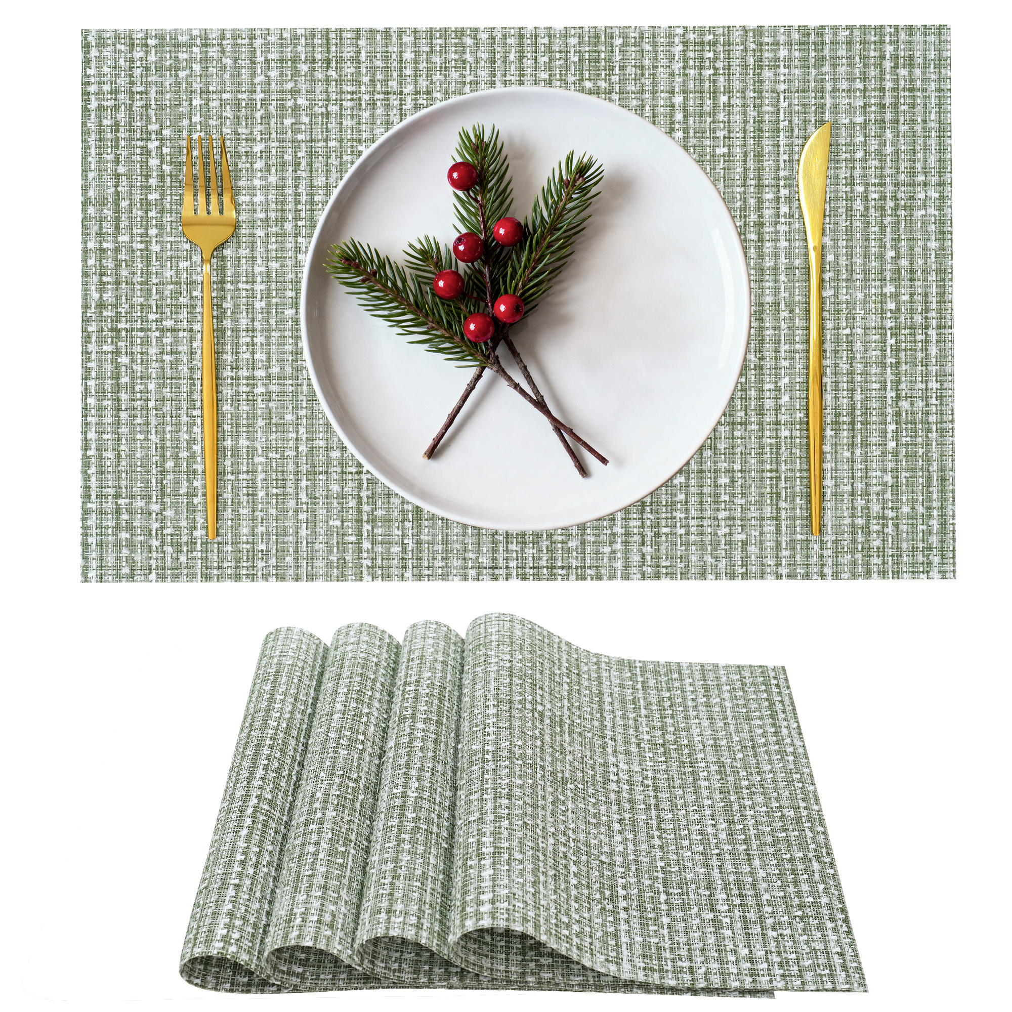 Our christmas placemats are made from 70% PVC and 30% Polyester. PVC materials are very durable, non-slip, no fading and heat resistant, very safe to use, all placemats are cut by machine with no rough selvedge, free bending, free cutting. Placemats set of 4 for dining table are the best decoration and protection for your dining table. Washable placemats are easy to clean, water and oil proof, hand wash in warm soapy water and wipe dry, if there is stains stuch in the table mats, use a brush and soapy water to clean. 18x12 inch extra large rectangular perfect size is a decorative accessories of the table setting, both indoor and outdoor will be perfect for your dish or dinner plate size. These placemats can be rolled up through long storage and put away, will remain stay flat when spread out, very easy to store and carry around. Add a sense of ceremony to your dining experience with VCVCOO placemats now.