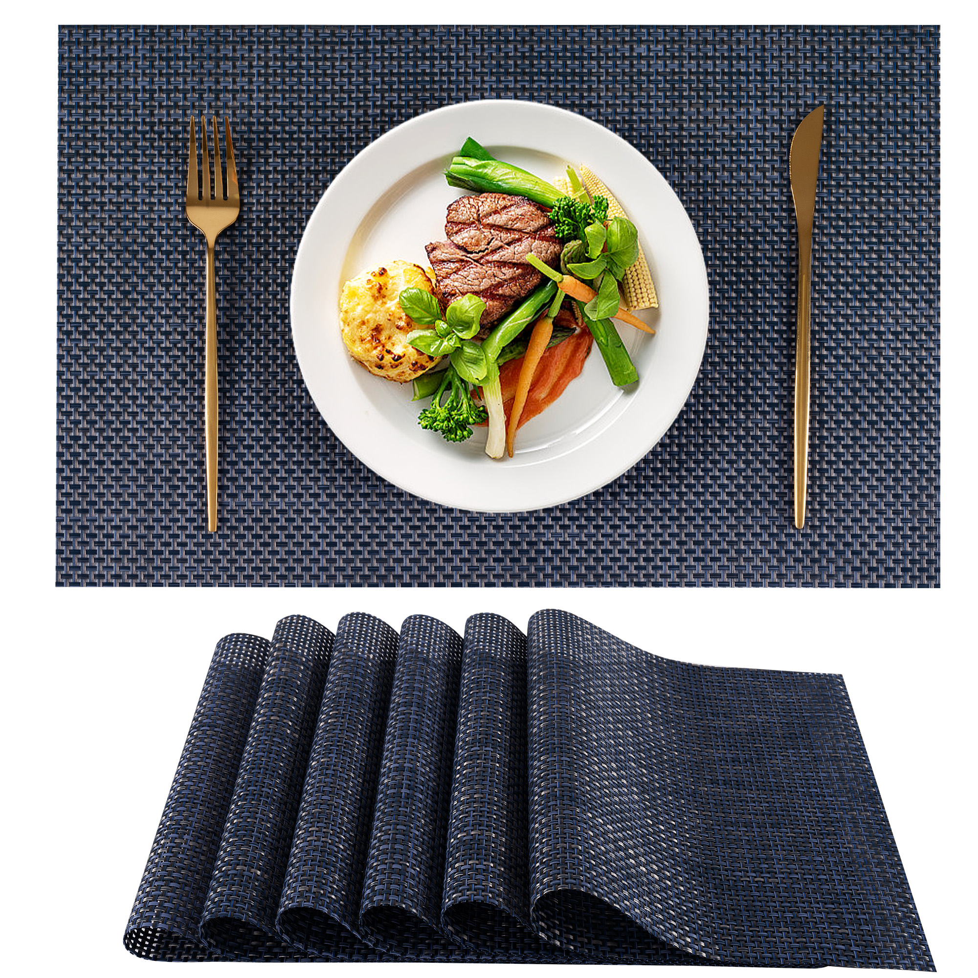 Give your dining room table a boost of style with VCVCOO classic placemat set. Each piece has a size of 12 x 18-inches size so that they provide a wider coverage on the table. Our placemats are made from 70% pvc and 30% polyester, very durable. The ultra-durable vinyl material is UV coated to resist fading. Hot sealing edges can bring about increased longevity. Easy to store, you can easily roll the placemats for convenient storage in the drawers. They works well with the tablescape, and cleaning up after meals is a breeze thanks to the washable material, just rinse under water or wipe with damp cloth, dry quickly. Festive family gatherings and dinner parties will be a pleasure with this set of 6 placemats adding glamour and pizzazz to your meals. Enjoy the relaxing time of dining with VCVCOO placemats now.